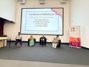 The final session of the conference featured thoughtful reflections from Prof Hatem Bazian, Prof Samina Yasmeen, Dr Nora Amath, and Dr Usman Afzali, moderated by Associate Professor Zuleyha Keskin. Their concluding insights emphasised the importance of critical scholarship, ethical responsibility, and community engagement in responding to injustice and global uncertainty.